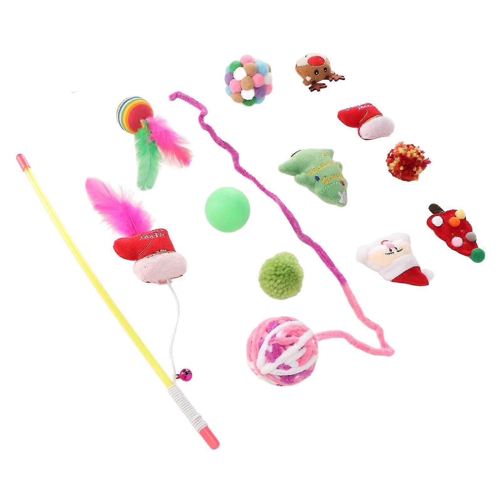 Colorful Christmas Kitten Toy Pack of 12 with Interactive Feather & Bell for Relief