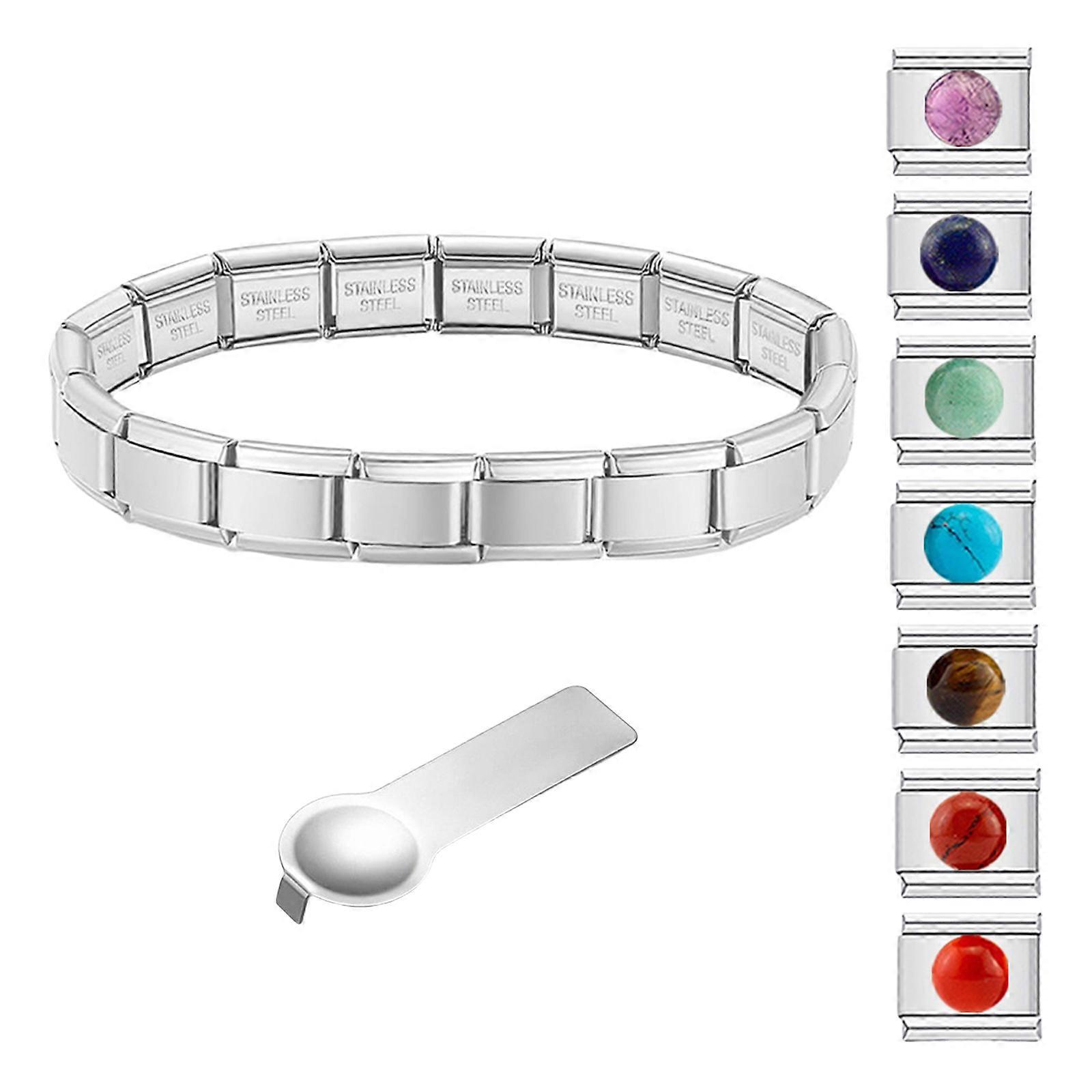 Colorful Stone Bracelet Italian Charm Bracelet Stainless Steel Unisex Jewelry Set Italian Links Bracelet for Daily Party