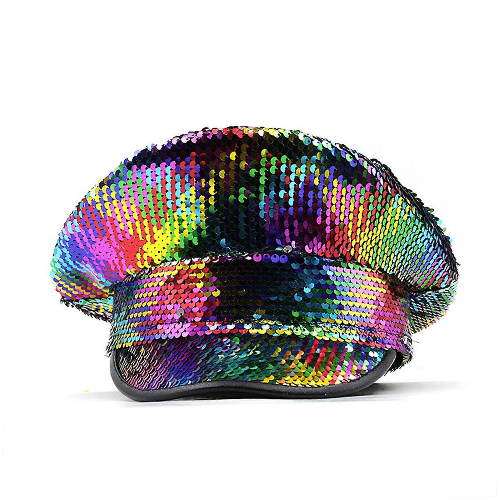 Woman Military Hat with Colorful Sequins Decor Stage Show Hat Military Hat Stage Performances Hat for Masquerade Party A