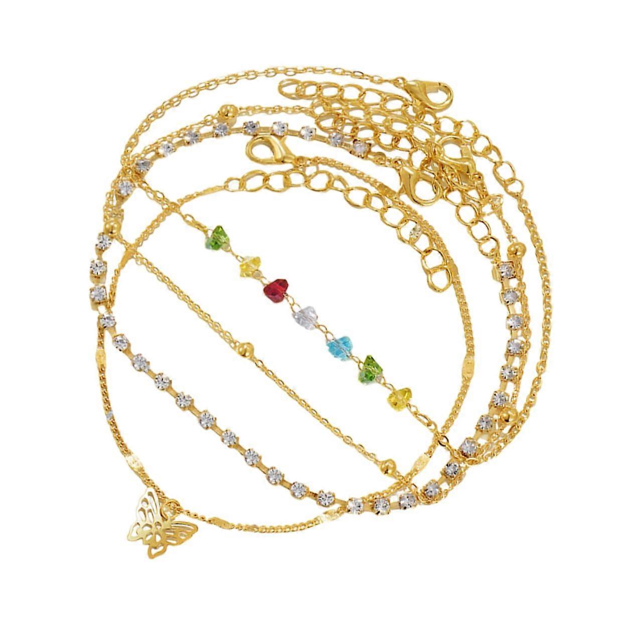 Colorful Diamond Butterfly Anklet Women's Pearl Beaded Alloy Rhinestone Gold