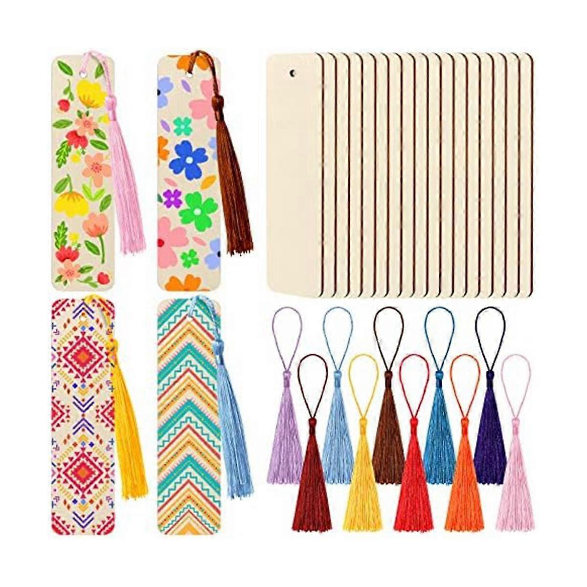 100Pieces Unfinished Wood Bookmark with Colorful Tassels 4.8 x 1.3 Inch Wooden Bookmark Wooden for