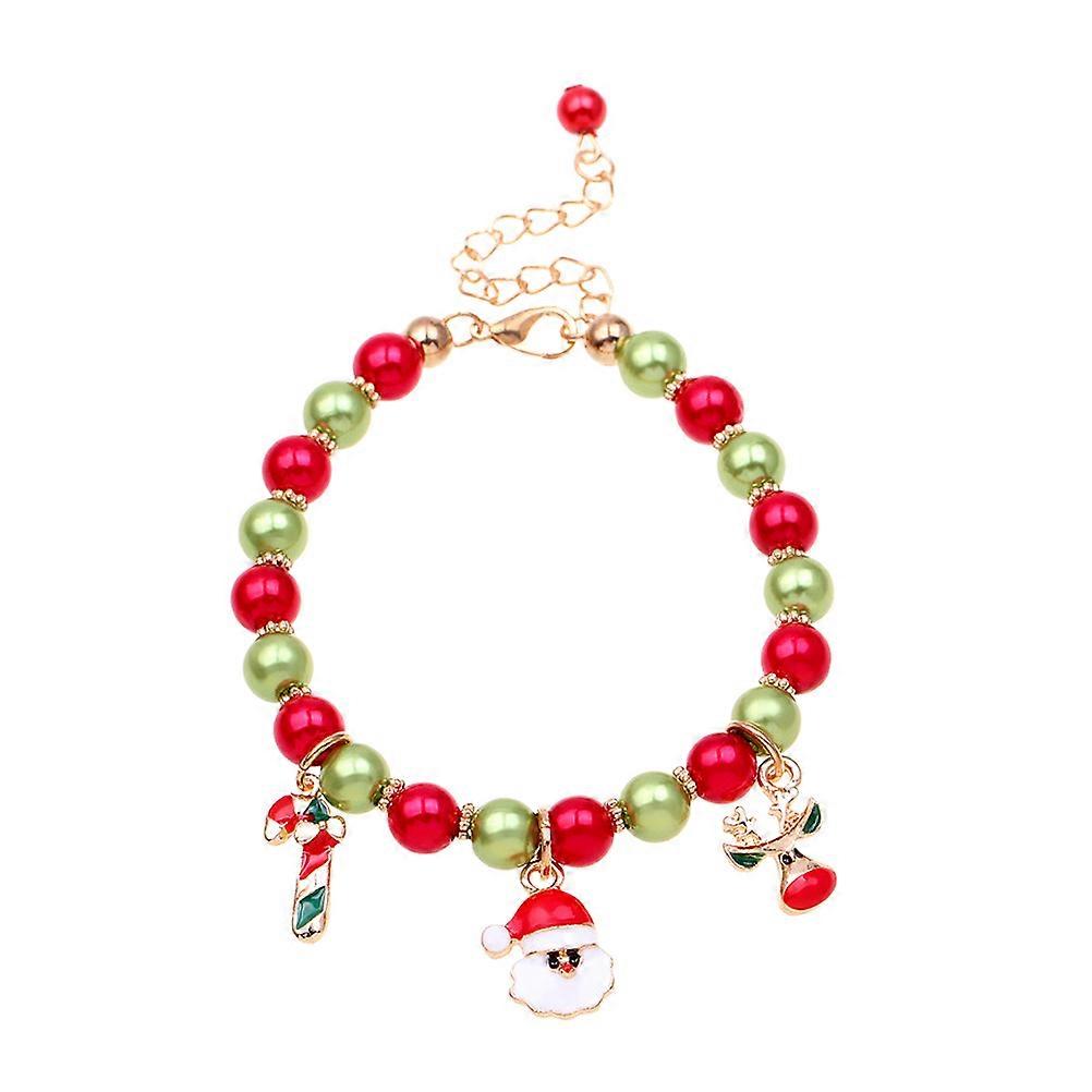 Colorful Bead Bracelet Alloy Elk Design Christmas Jewelry Decor Adjustable Size 1Pcs