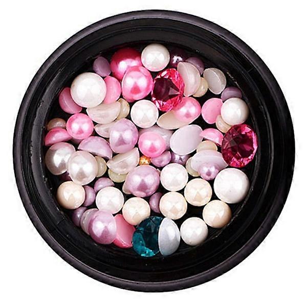 Colorful beads + spherical porcelain balls + crystal rhinestone nail art decoration pink