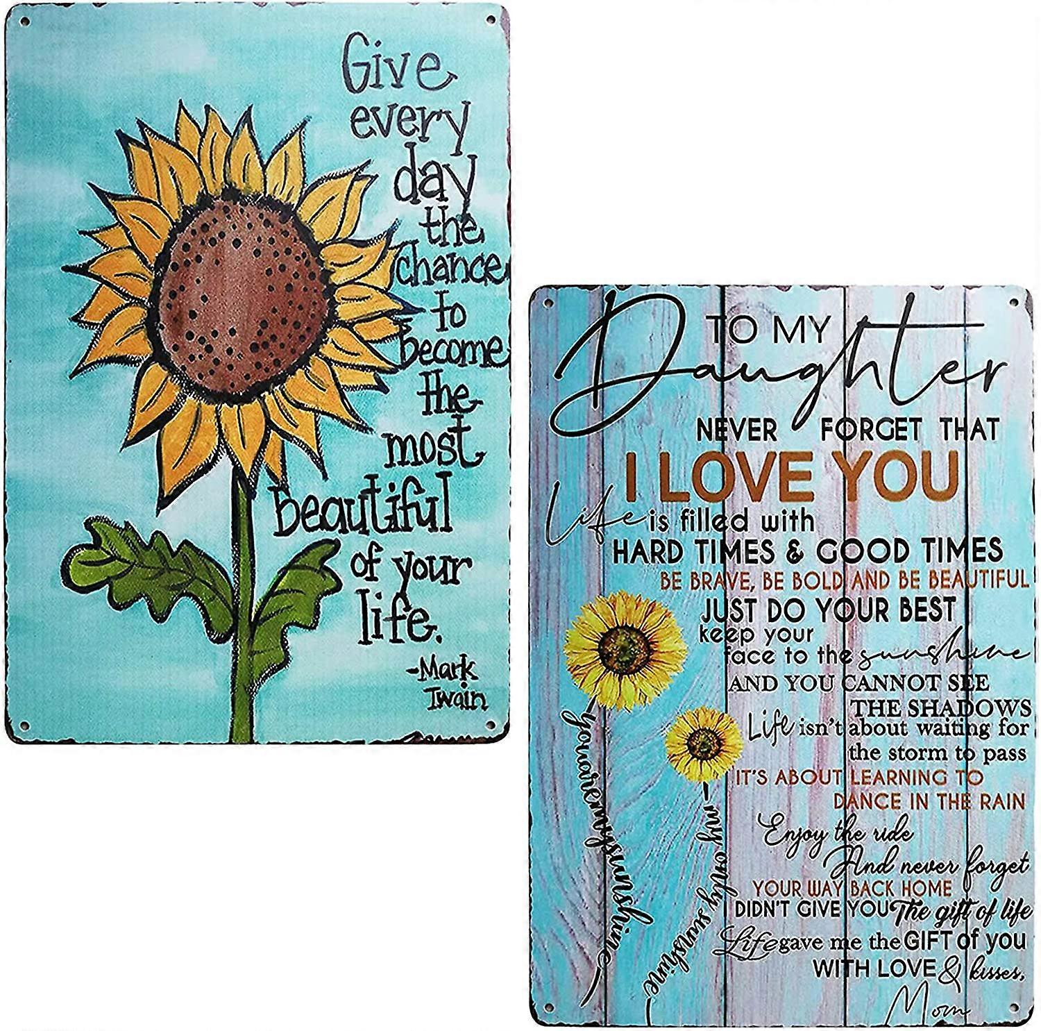 Colorful Sunflowers Metal Tin Sign Wall Art Decor for Living Room Vintage Art Coffee Bar Signs Home Decor Gifts Decoration 2Pcs-8X12Inch