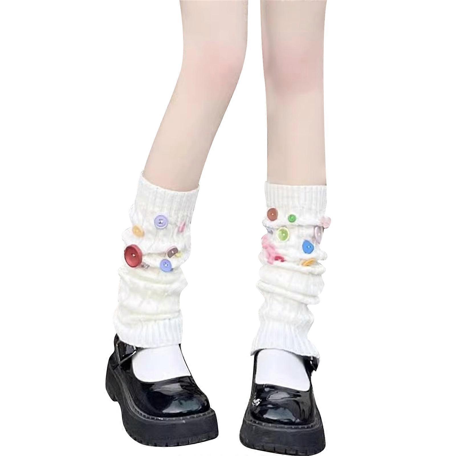Colorful Button Stackable Socks Women Leg Warmers Comfortable Claf Length Stockings for Fashion-forward Individuals White