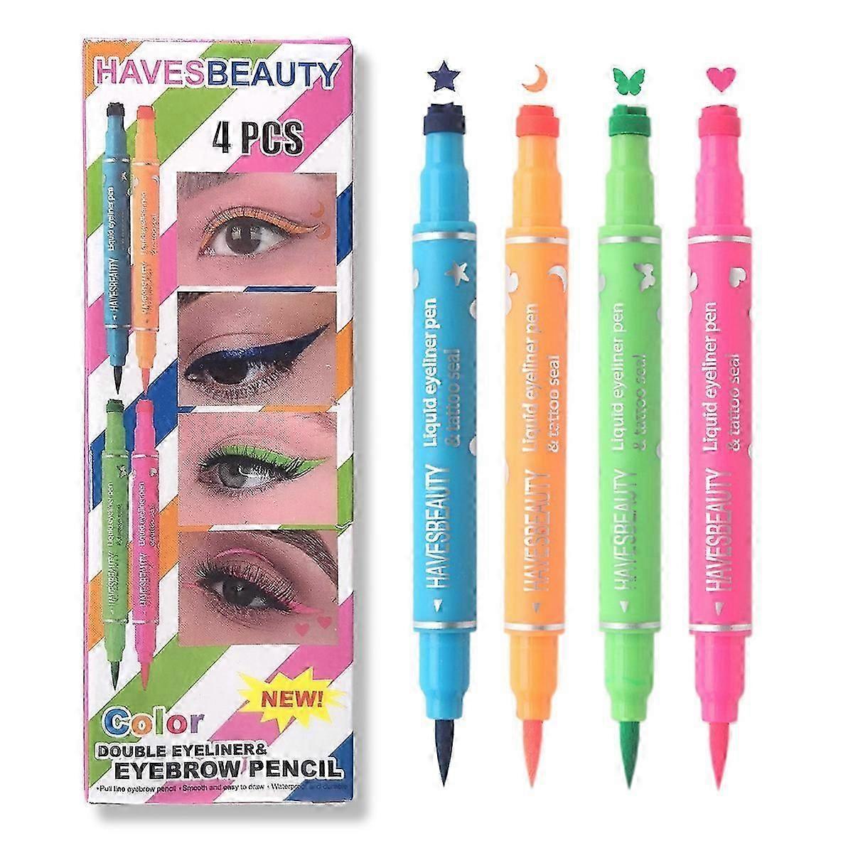 Colorful Liquid Eyeliner Stamps Set,Double-side Winged Eyeliner Stencil Pen, Waterproof Long Lasting with Star, Butterfly, Moon