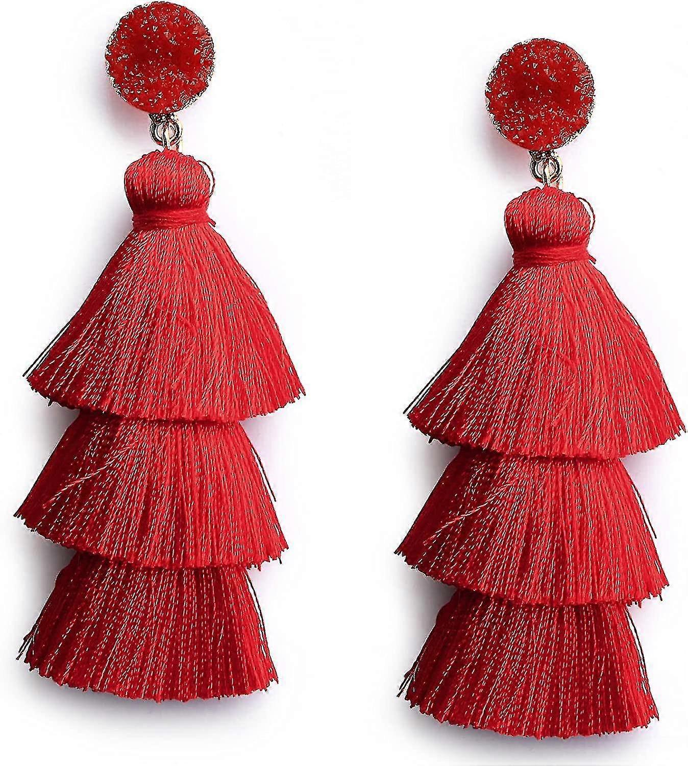 Colorful Layered Tassel Earrings Bohemian Tiered Tassel Stud Dangle Drop Earrings For Teen Girls Bir
