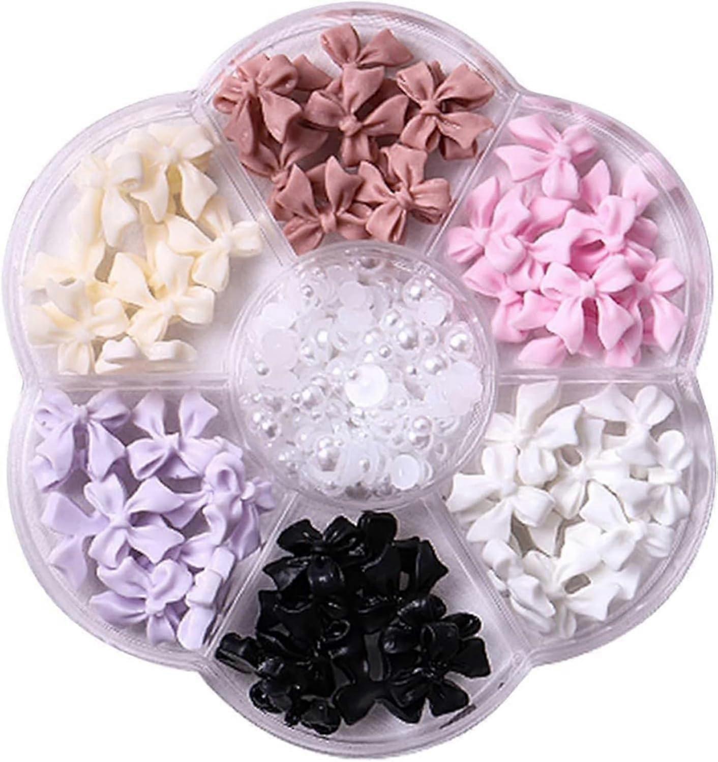 Colorful Bow Nails Rivets Rhinestone Crystal 3D Resin Bow Nail Charms Set For Nails Design Cute Bow Nail Decorations