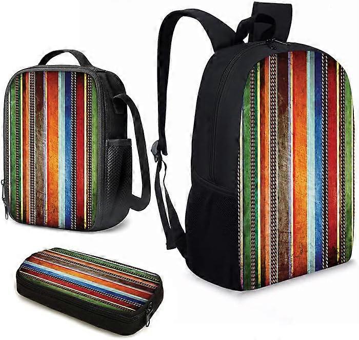Colorful Wood Grain Pattern 3 Pieces Boys Girls Backpack Set with Lunchbox Pencil Case, 17 Inch Daypack Childern School Bag Set Bookbag