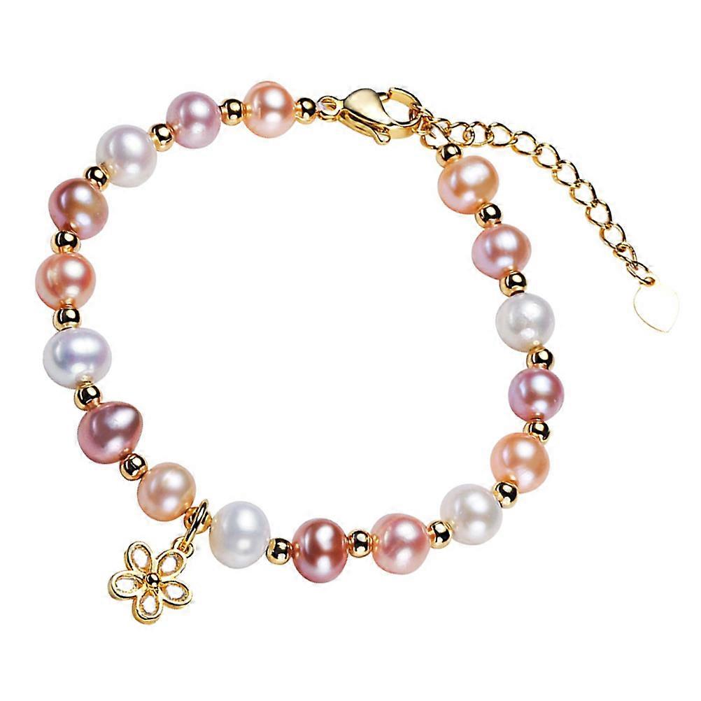 Colorful Freshwater Pearl Bracelet with Flower Pendant for Women Assorted Color
