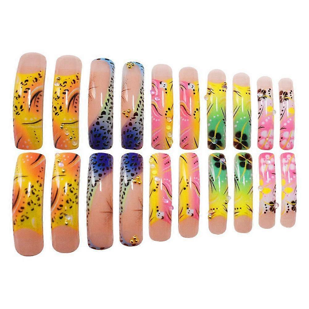 Colorful Graffiti-Style False Nail Long Press On Nails For Nail Art Decor