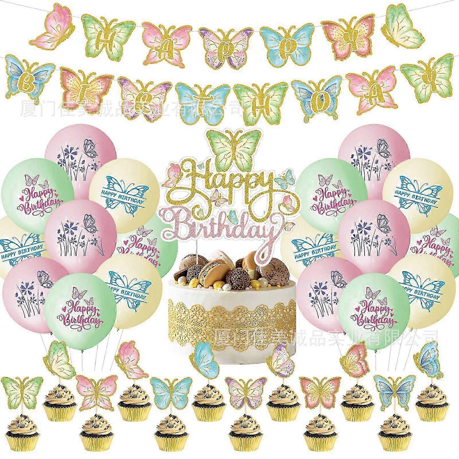 Colorful butterfly theme birthday party decoration banner paper string cake card spiral pendant candy box ornaments
