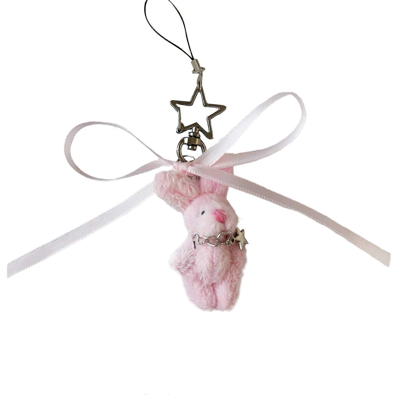 Practical Lovely Rabbits Keyring with Colorful Bowknot Stylish Keychain Charm Fashion Accessory for Phone Decoration Pink