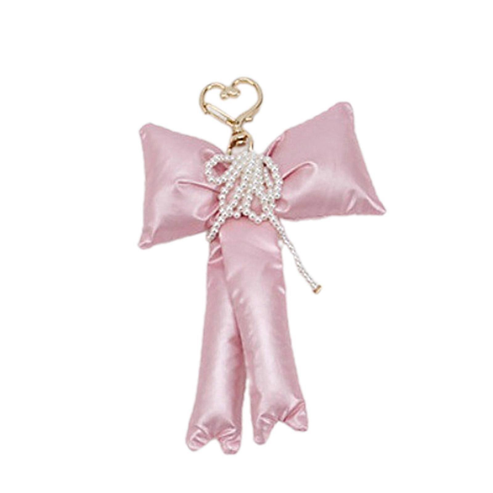 Colorful Phone Lanyard Pearls Bowknot Pendant Keychain Butterfly Bow Phone Charm Keyring Accessory for Women Girl Pink