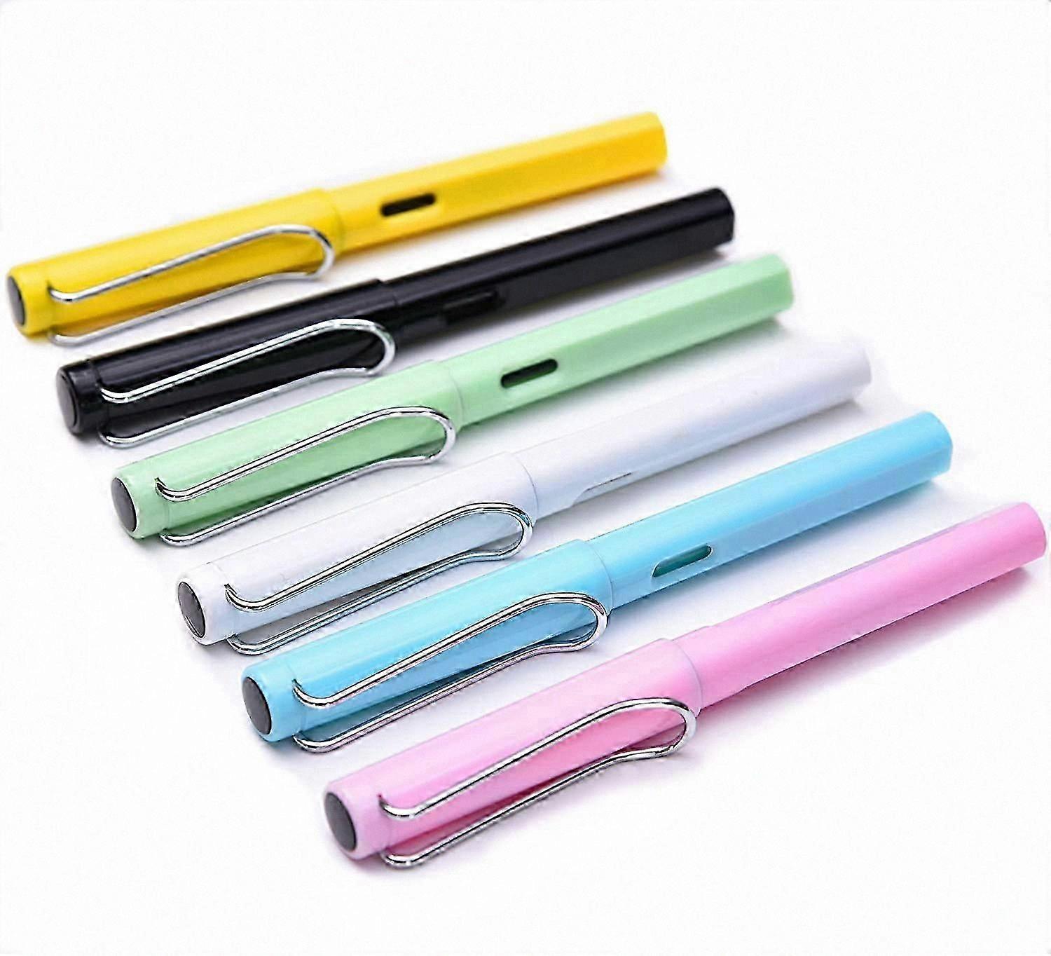 6-Pack Colorful Fountain Pens (Yellow, Green, Blue, Pink, White, Black)