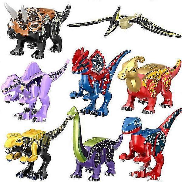 Colorful Dinosaur 8 Pcs Crown Dragon Brachiosaurus Spinosaurus Sub-type Dragon Raptor Tyrannosaurus Rex