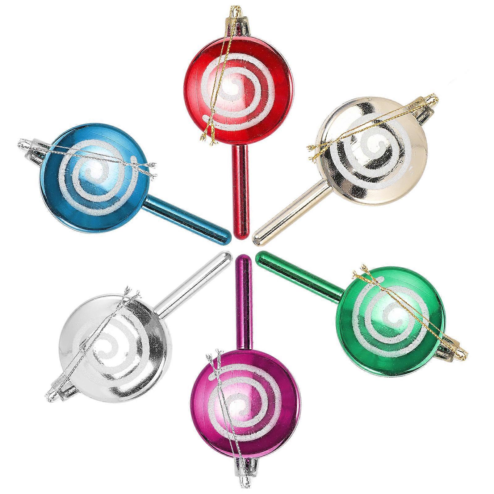 Assorted Color Candy Theme Decorations 6Pcs Plastic Pendants For Christmas Tree Hanging And Festive Celebrations