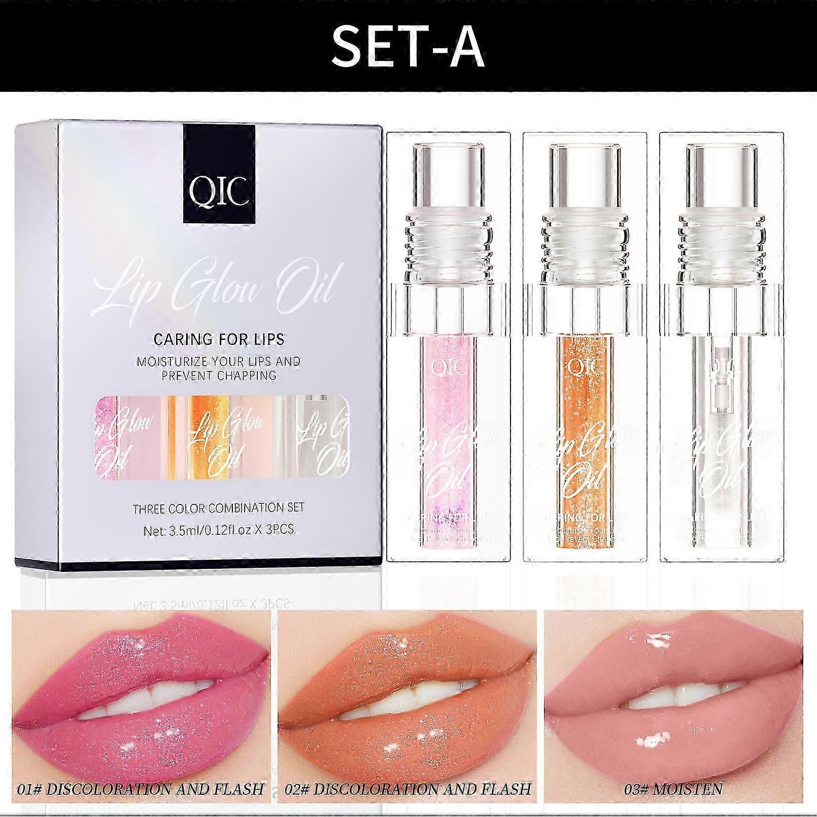 Color Changing Lip Oil Set,Magic Color Changing Lip Gloss Big Brush Head, Long Lasting Moisturizing Smooth Non-Sticky for Lip Care and Dry Lips