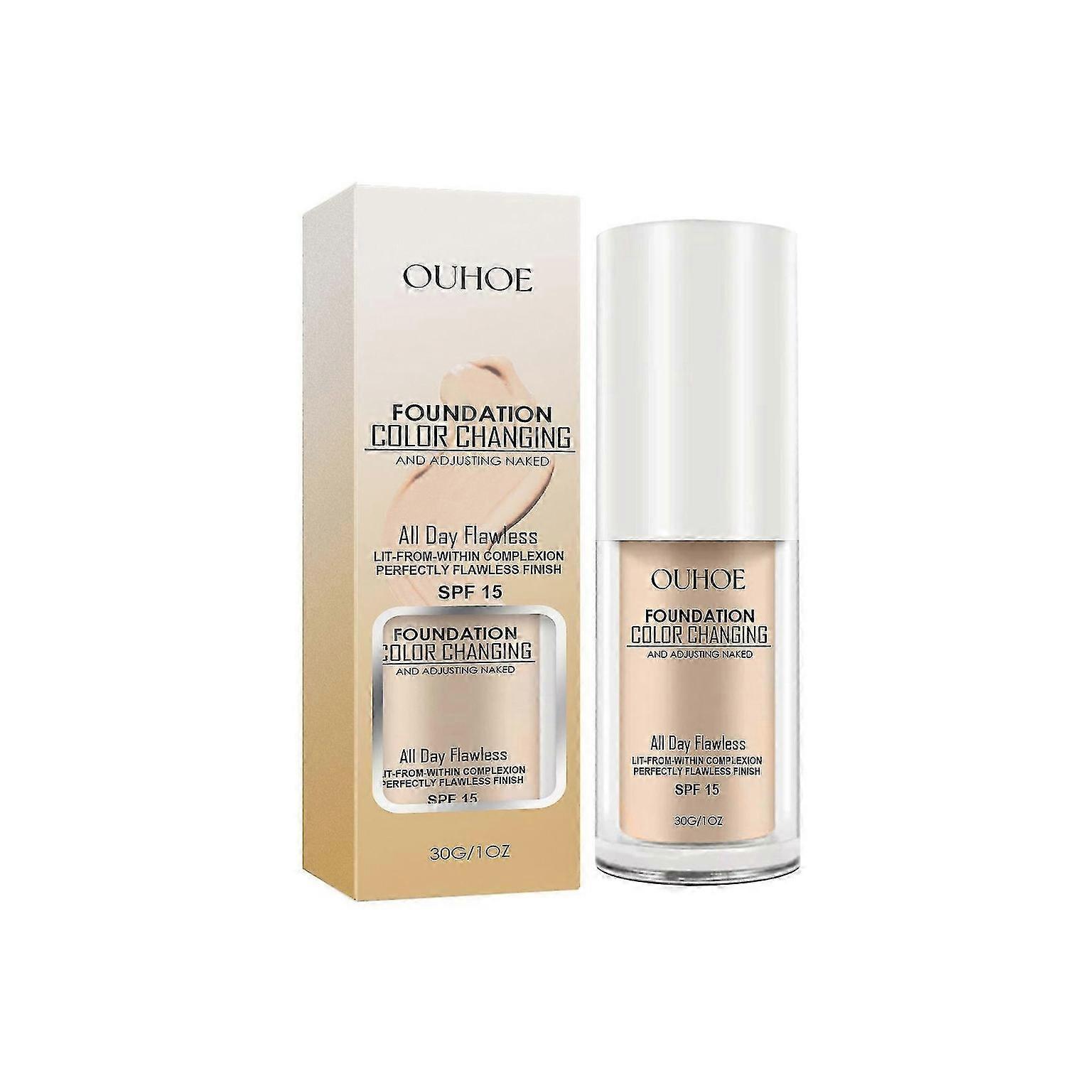Colour changing foundation: liquid foundation contains shade-sensing beads which are encapsulated pigments that deliver perfect shade transformation upon blending into skin. Once you apply on your face, it goes on white and instantly self-adjusts to match dull faces tone, exact skin tone, natural looking colour in your perfect shade.<br><br>Tinted sunscreen and moisturiser: this foundation contains SPF 15 sun protection to shield your skin from harmful UVA and UVB rays. And our colour changing foundation contains skin beautifying, moisturising and hydrating ingredients, which can maintain luster throughout the day, cover fine lines and wrinkles, and will not crease, crack or condense, and nude makeup can make the skin shine.<br><br>Match most skin tone: colour-changing foundation is a new type of concealer that can be automatically adjusted to suit your skin tone in real time. Suitable for most skin tones. So, as the makeup is thoroughly blended into skin, it intuitively transforms to your skin tone for all day, natural looking colour in your perfect shade.<br><br>Waterproof and Sweatproof: Designed for daily use, this lightweight foundation provides a silky glow to your face. And waterproof and sweatproof, so you don't have to worry about taking it off. You can say goodbye to touch-ups all day long, allowing your perfect makeup to last all day.<br><br>Easy to apply: apply appropriate amount of liquid foundation on your face to achieve your desired natural looks. Use the loose powder after using the colour changing foundation will receive a better effect that the make-up will be more docile and natural.
