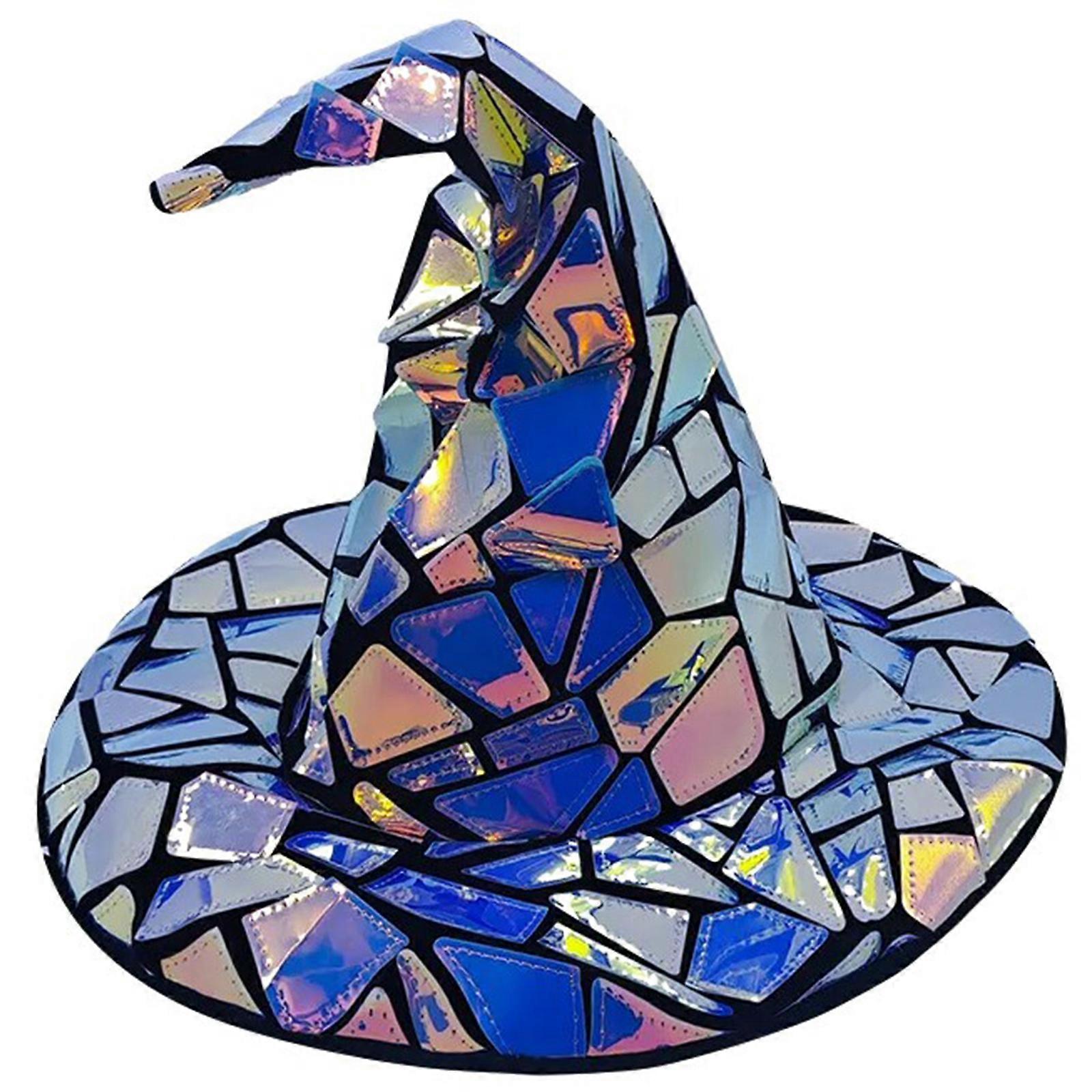 Modern Halloween Witch Hat with Color Patches Women Halloween Stage Performances Hat Festival Carnivals Cosplay Hat Black