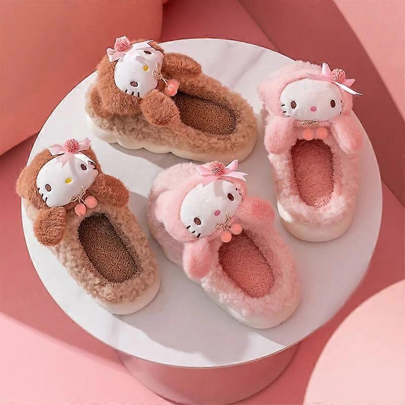 Kawaii Sanrio Anime Cotton Slippers Cute Hello Kittys Keep Warm Casual Versatile Thick Bottom Plush Home Shoes Kids Doll Gifts