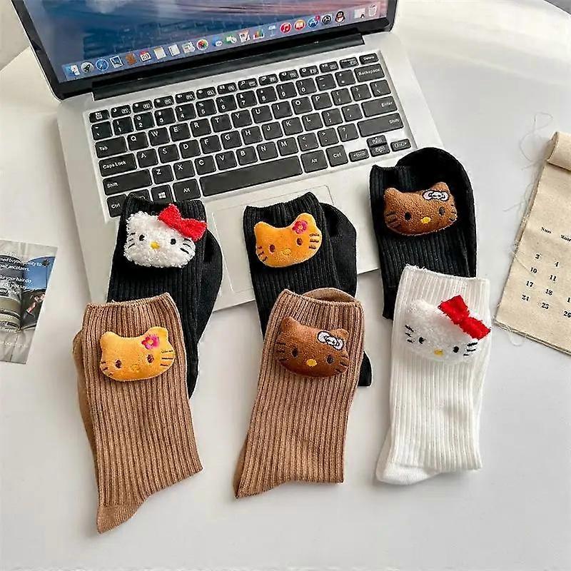 Kawaii Sanrio Anime Socks Cute Hello Kitty Solid Color Autumn Winter Warm All Cotton Middle Cylinder Socks Girls Christmas Gift