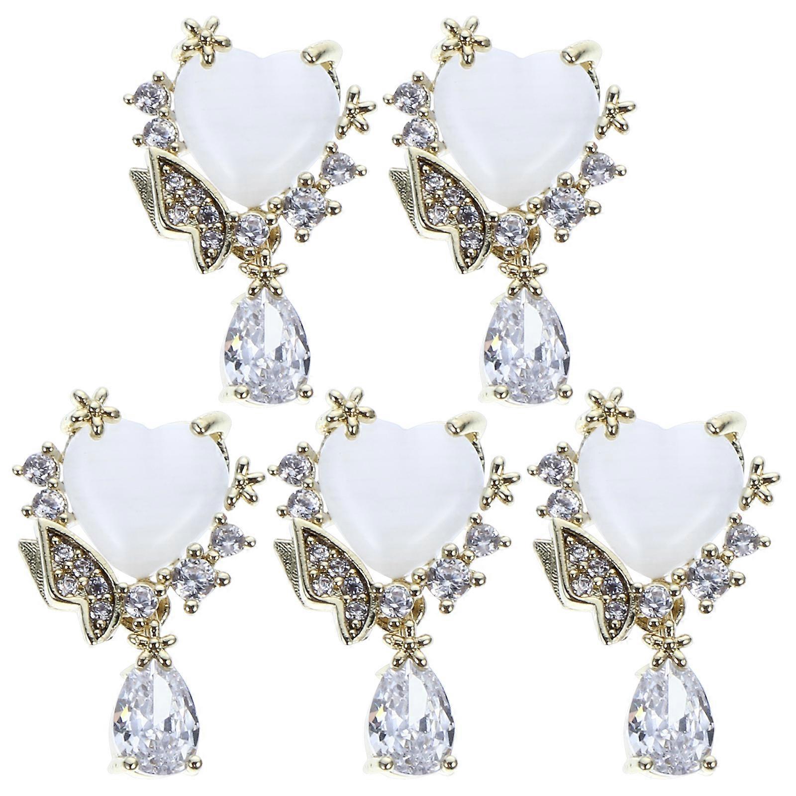 Kawaii Nail Charms 5Pcs Golden Heart Nail Decorations For Personal Use Sweet Style Unique Design 2X1X0.5CM