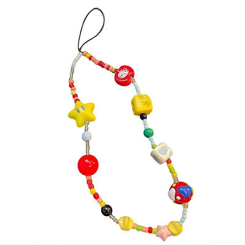 Kawaii Hello Kitty Painted Beads Phone Chain Sanrio Charm Keychain Sweet Girl Anti-lost Wrist Strap Bracelet Bag Decor