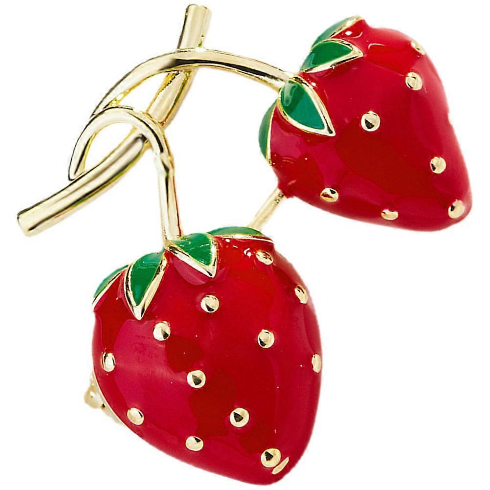 Kawaii Brooch Strawberry Shape Metal Brooch for Stage Costume Decoration Red 2.4x1.6cm Fashionable 1Set