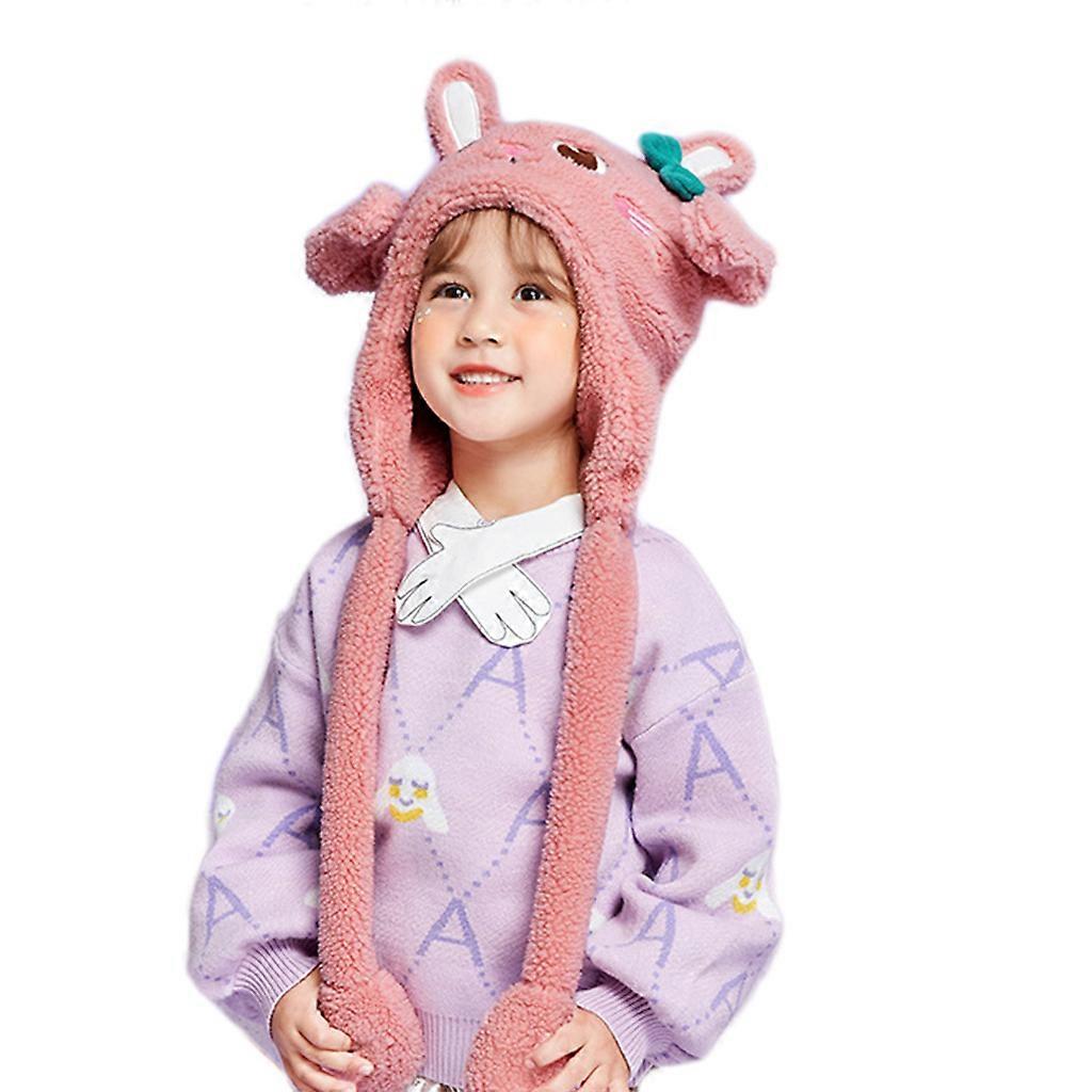 Kawaii Ear Moving Jumping Hat Cartoon Animal Hat Plush Toy Cute Ears Moving Air Bag Cap Cosplay Party Gift for Children Pink rabbit