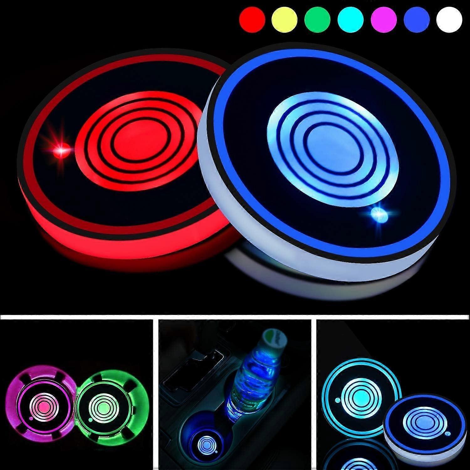 Car Accessories 2 Pcs Led Cup Holder Lights LED Car Coasters 7 Colors Luminous Cup Pad USB Charging