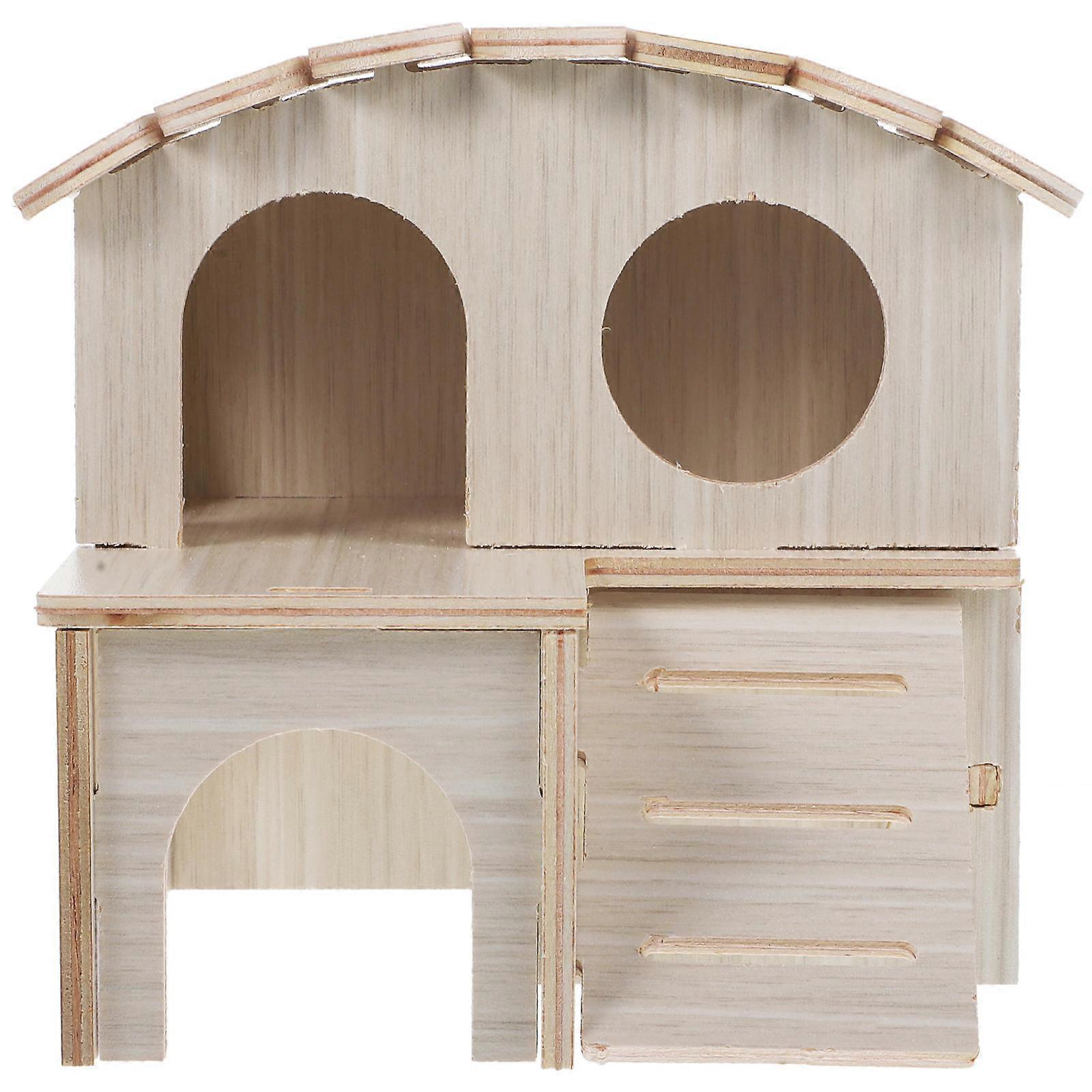 Khaki Hamster Wood House for Small Pets Durable Synthetic Material Ideal Hideout 7.5 x 5.5 x 5.5 Inches