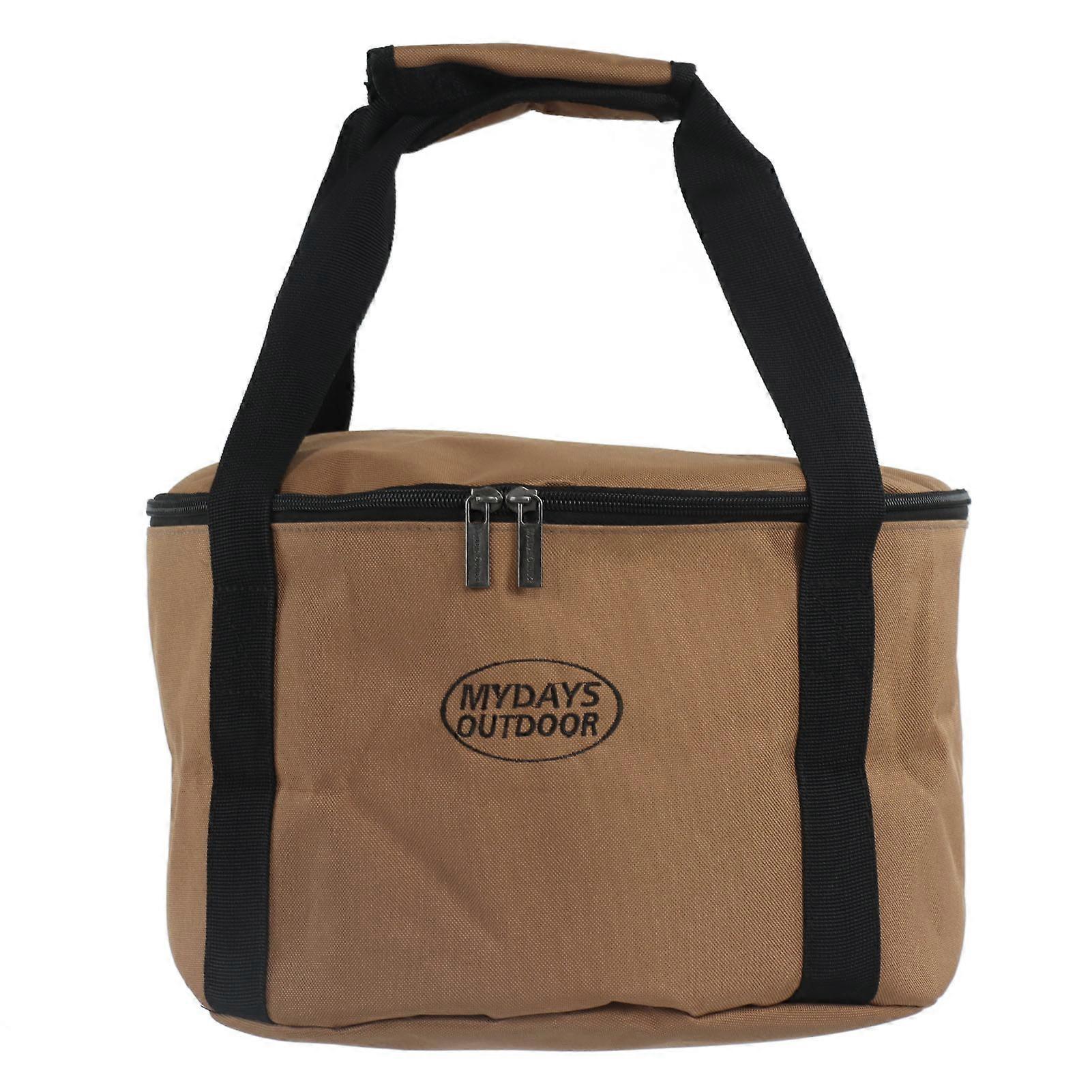 Khaki Outdoor Cookware Storage Bag, Portable Camping Stove Tableware Organizer with Handles and Straps for Picnics, Medium Size