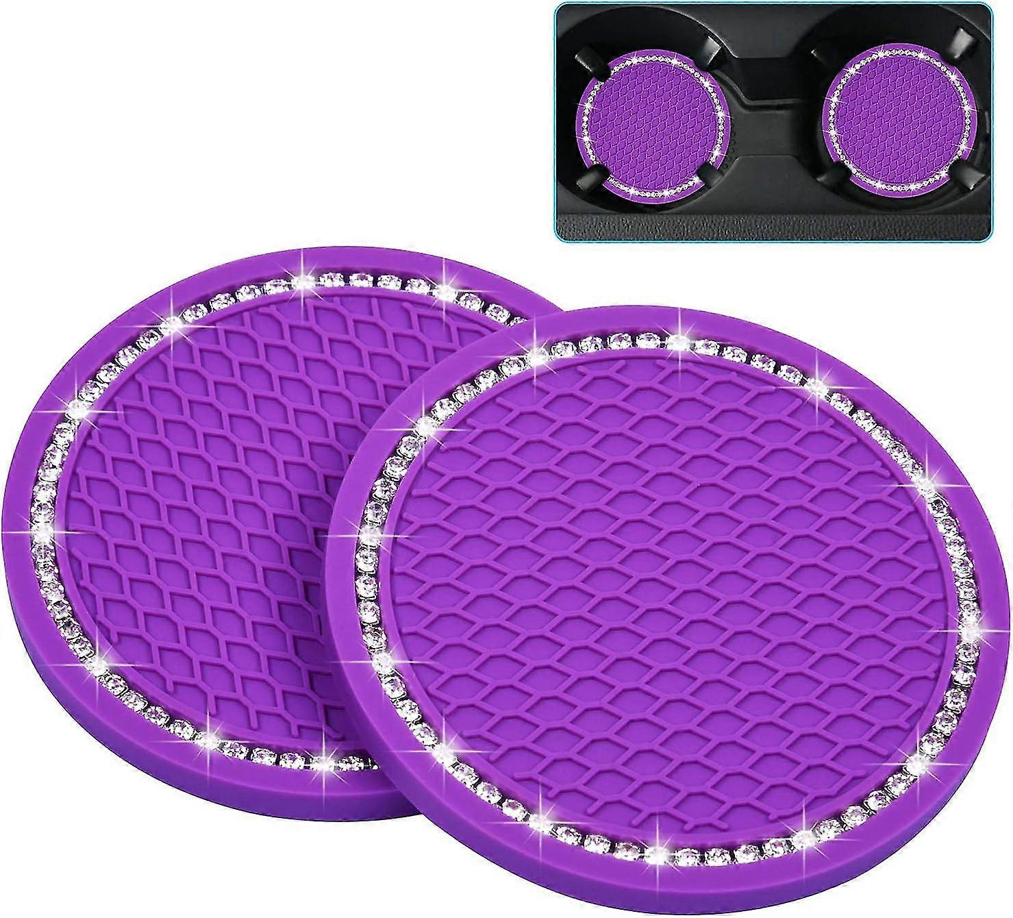 Made of premium durable and environmental friendly PVC material, and add within the improved aluminum diamond base to avoid rust. Suitable bling design2.75 inch (7cm) and 0.2 inch (5mm)- Universal fits perfectly for most car's cup holders. Protect the car's original cup holder slot from dust, avoid beverage or water damage, keep your holder clean and non sticky. Anti-slip grip Car Cup Holder CoastersPrevent the cup from sliding and help to reduce the noise while driving. Wisdompro Retail Package includes 2 x Bling PVC Car Cup Coaster(Purple)