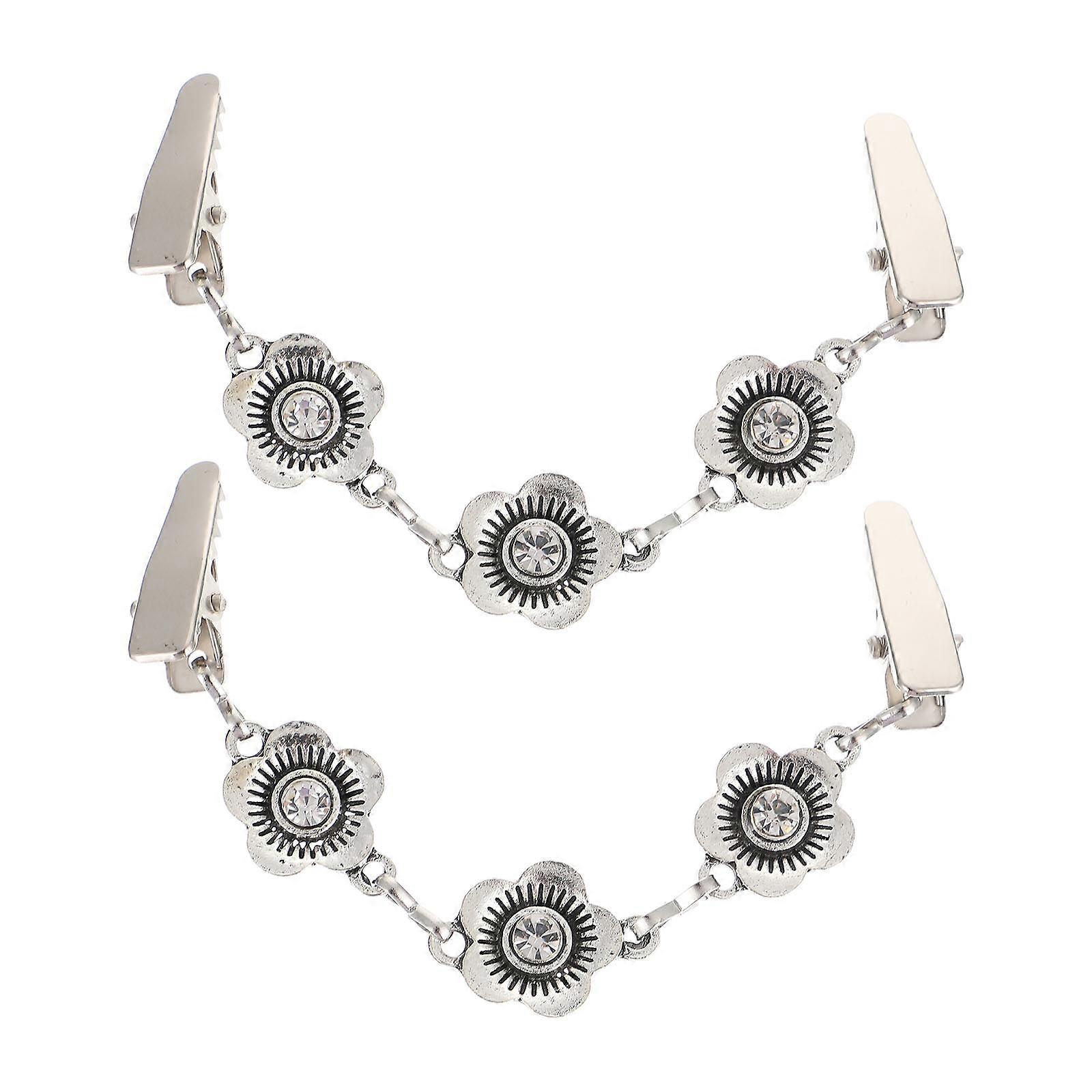 Cardigan Clips Vintage Sweater Shawl Clips Silver Color Flower Accessory For Women Ladies 2Pcs
