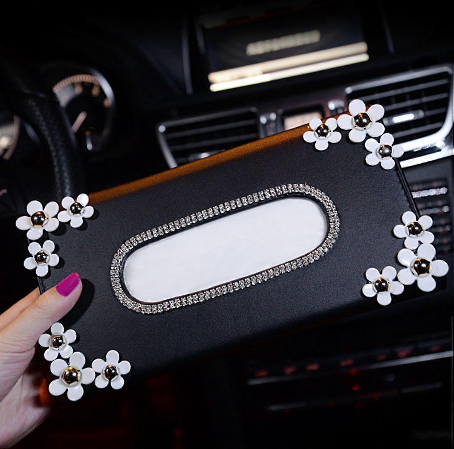 Car tissue box Creative diamond daisy car sun visor hanging tissue box car tissue box, black Betterlifefg