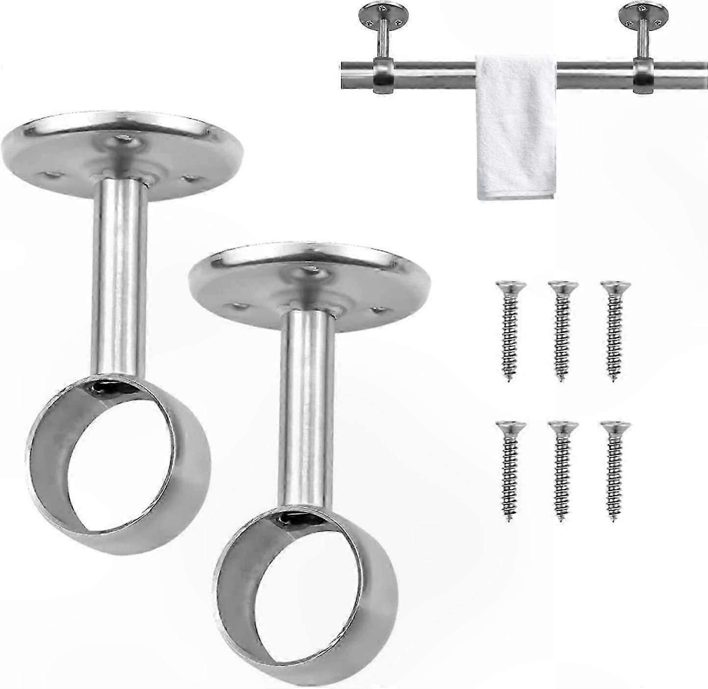 Stainless Steel Rod Holder for Curtains and Wardrobes, 22mm Diameter, 74mm Height, Shower and Storage Use