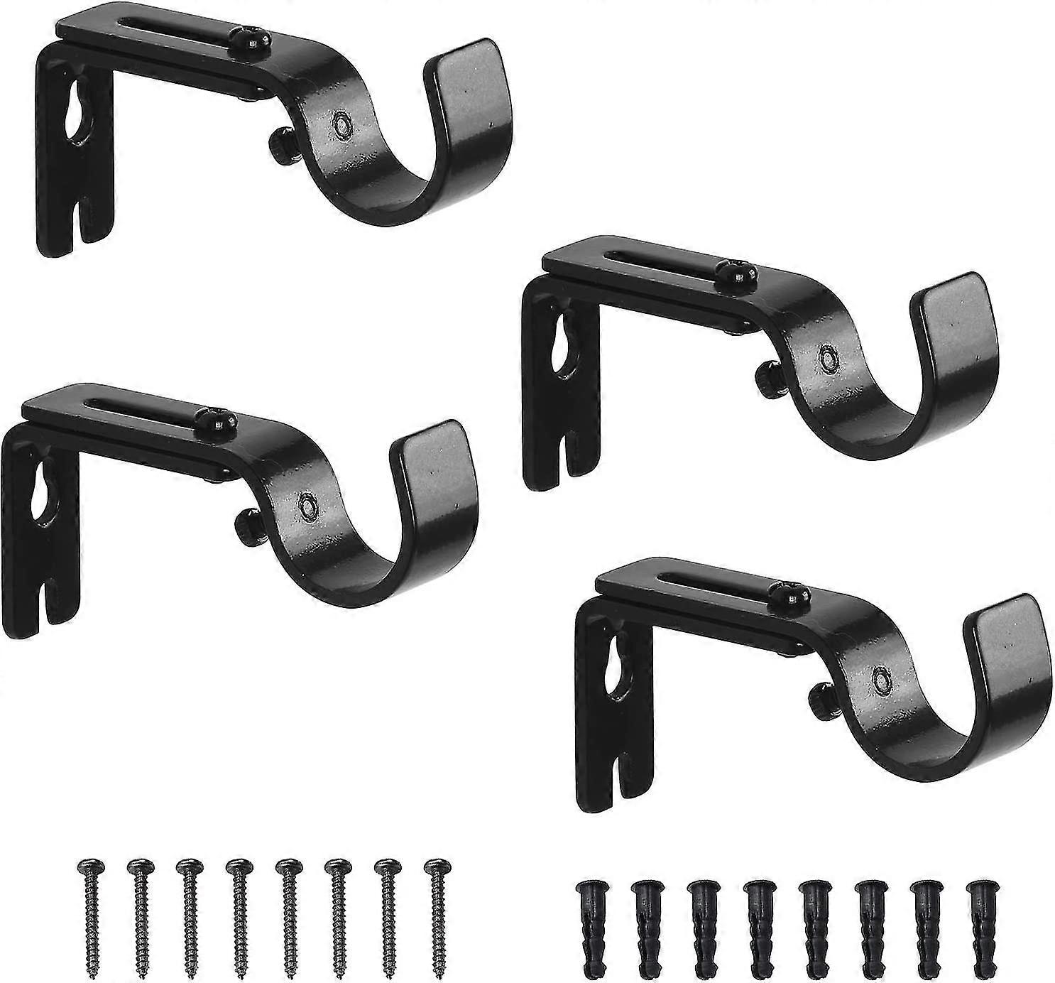 4 Pcs Adjustable Curtain Rod Wall Bracket Stainless Steel Fixings For Curtain Rod Accessory Black Metal Home Bedroom