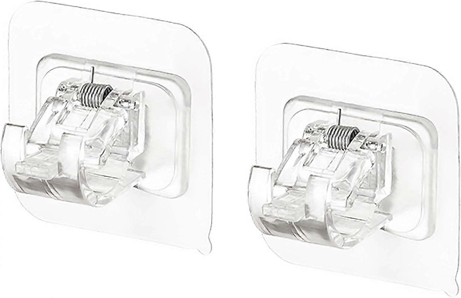 Curtain Rod Bracket, Self-Adhesive Curtain Rod Hooks, 4 Pieces Transparent Curtain Rod Bracket Curtain Hook Bracket for Kitchen Bathroom