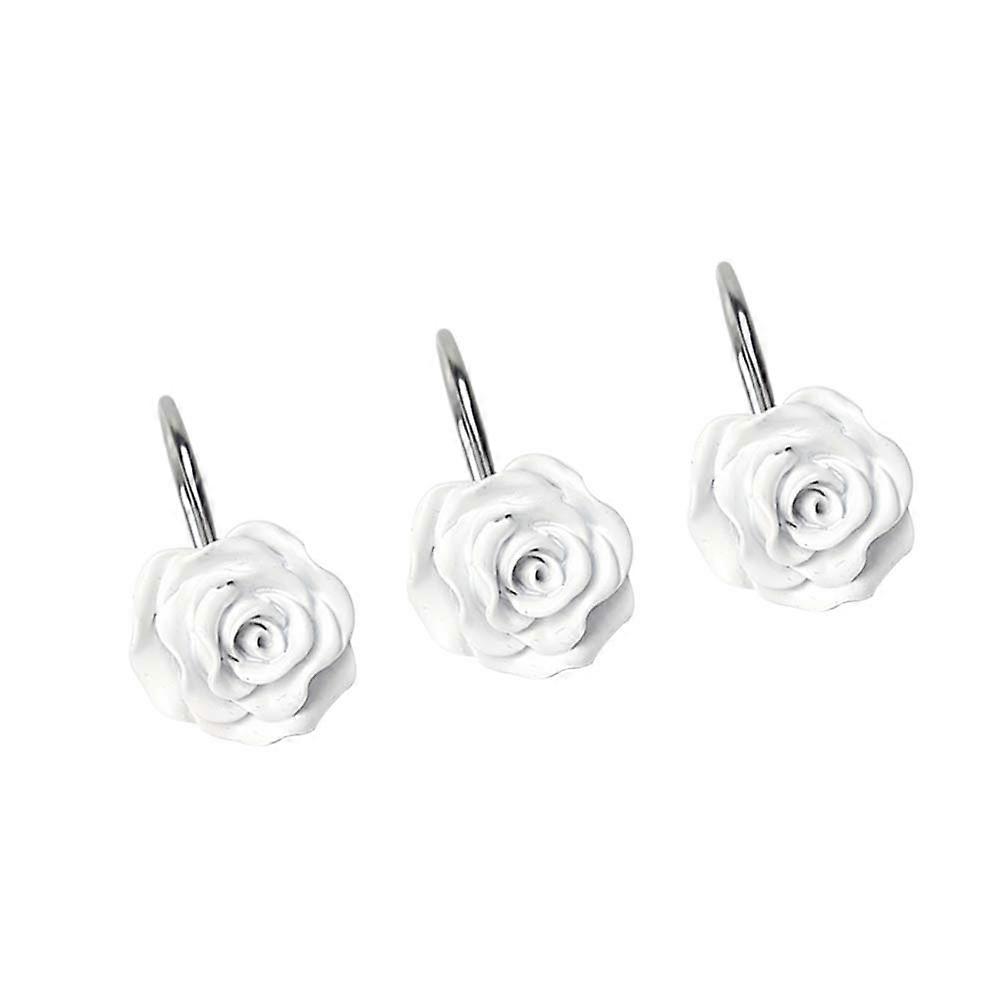 Hooks for Curtain Rods Rustproof Resin Rose Flower White Bath Curtains 12Pcs