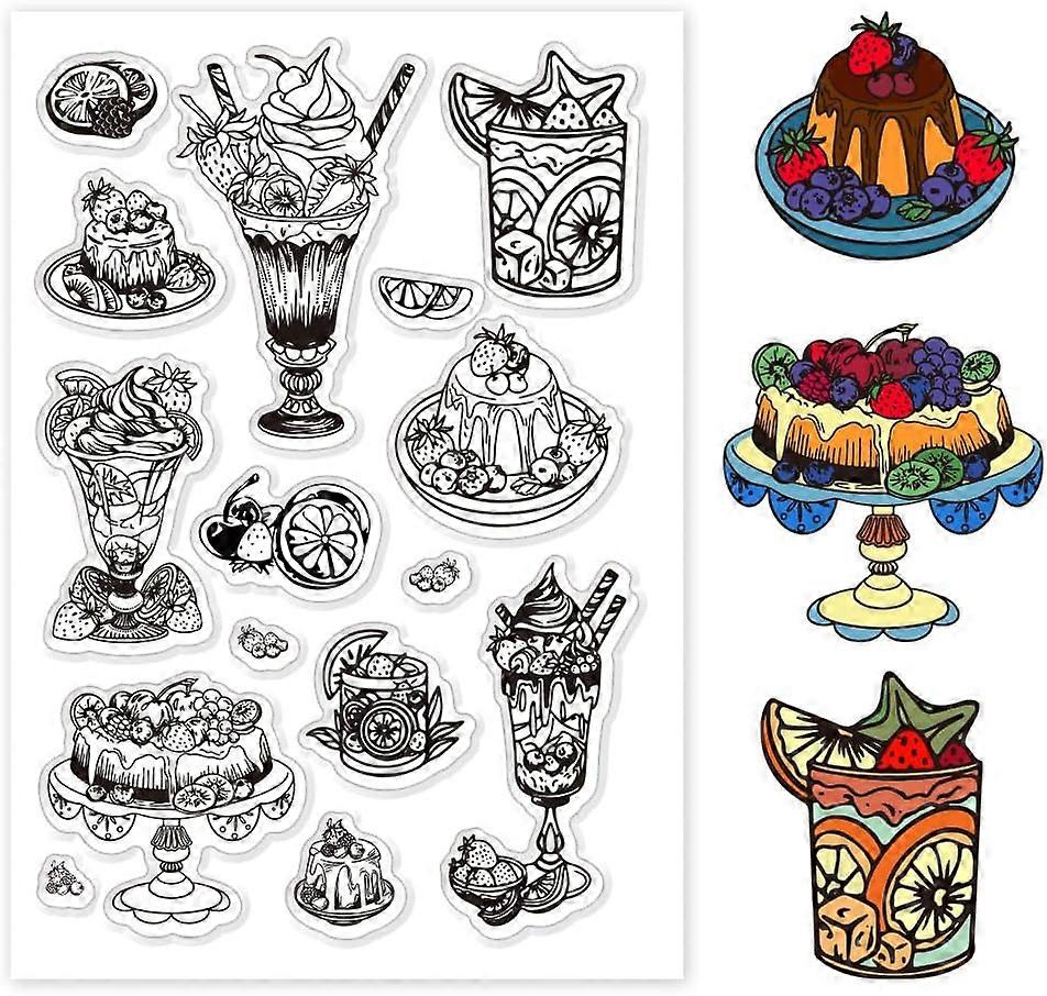 Dessert Clear Stamps for Card Making Clear Silicone Stamp Drinks Transparent Craft Seal Stamp Food Rubber Stamp for DIY Scrapbooking Stamp Album Craft