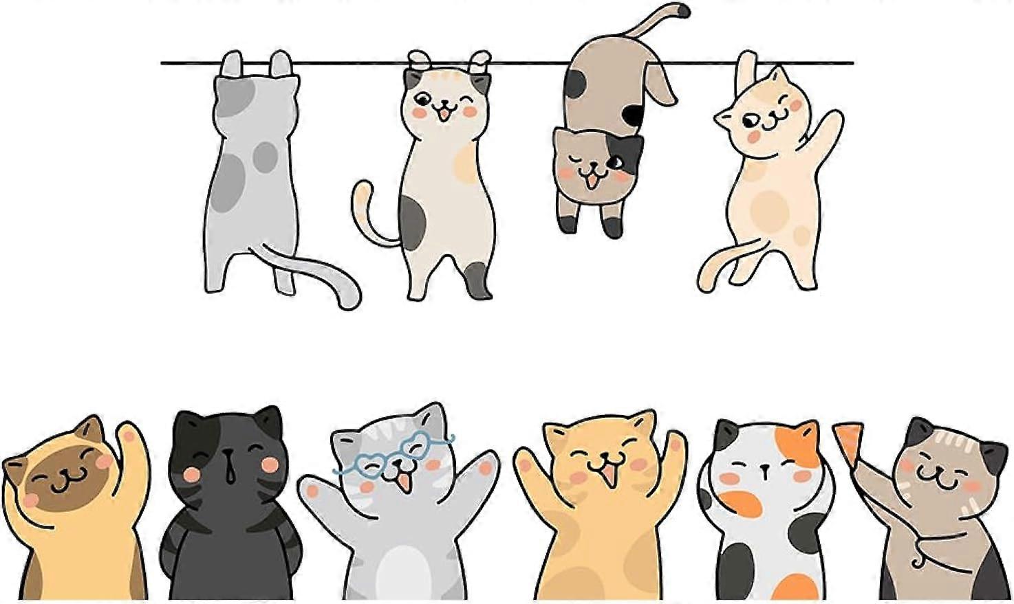 Lovely Carton Cat: We have carved various types of cats with cute expressions, perfect for sticking anywhere in your home, and our wall stickers are made of fine carving technology, exquisite workmanship.Reliable and Durable: Made of self-adhesive PVC material,these wall decals are reliable and durable,safe to use, bright and lasting color,not easy to fade,can maintain luster for a long time,stickers also have adhesive,not easy to fall off,make your home more charming and charming.Size:118x78cm.Wide Use: These carton cat family wall decor can be widely used in living room,vanity,TV wall,bathroom,bedroom,classroom,nursery,library,entrance corridor,wardrobe door,glass window,etc.,so that these places get rid of the monotonous,add vitality.Wall Applicability: The cat family wall paste is suitable for flat brush wall,glass surface,wood surface,stainless steel plate surface,not suitable for brick wall. Rough walls,fabric wallpaper,easy to fall off.Easy to Paste and Peel: Can be pasted on many smooth,flat,dry,clean surfaces,easy to paste or remove,no trace,just peel them off,and then stick where you like,these stickers can stay for a long time without falling off.