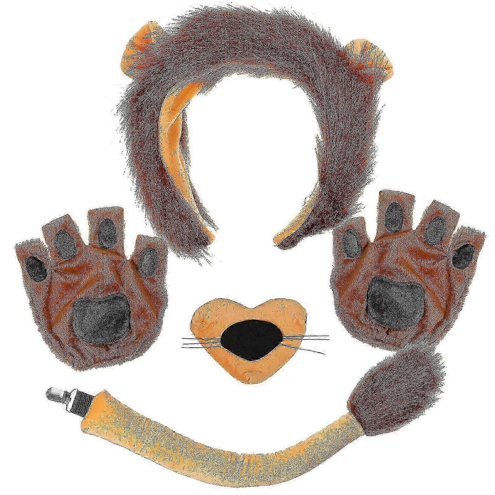 Carnival Costume Accessories Lion Ears Nose Tail Paw Gloves For Adults 1Set