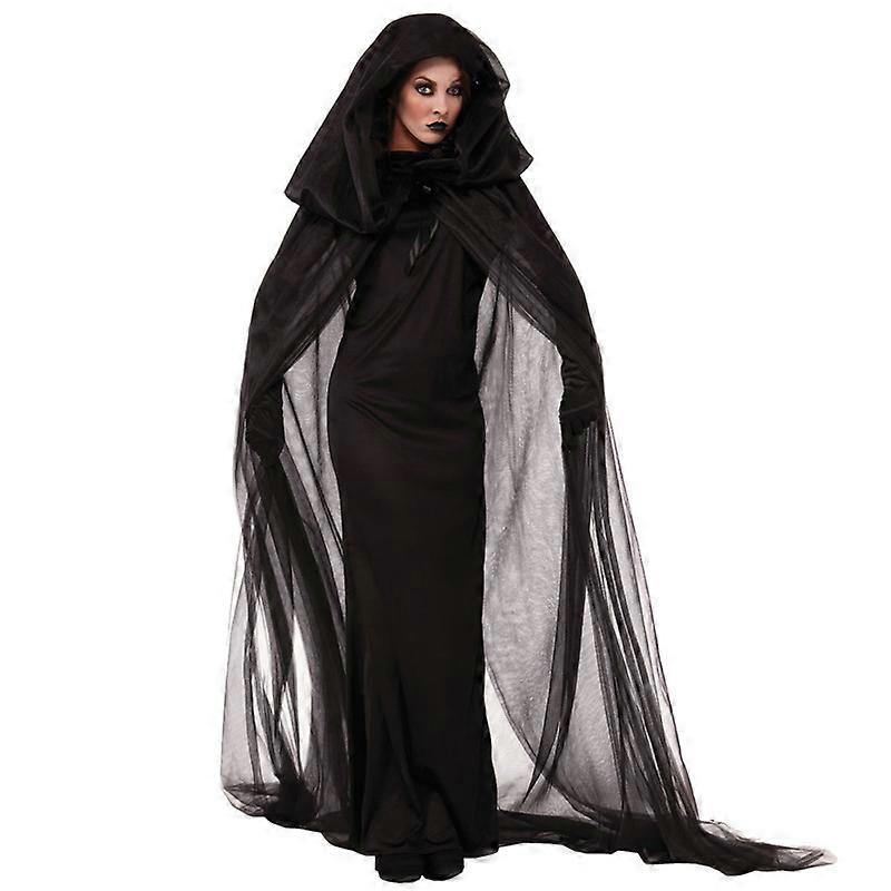 Carnival Halloween Lady Wicked Witch Costume Classic Long Crape Hooded Cape Forsaken Souls Roleplay Cosplay Fancy Party Dress
