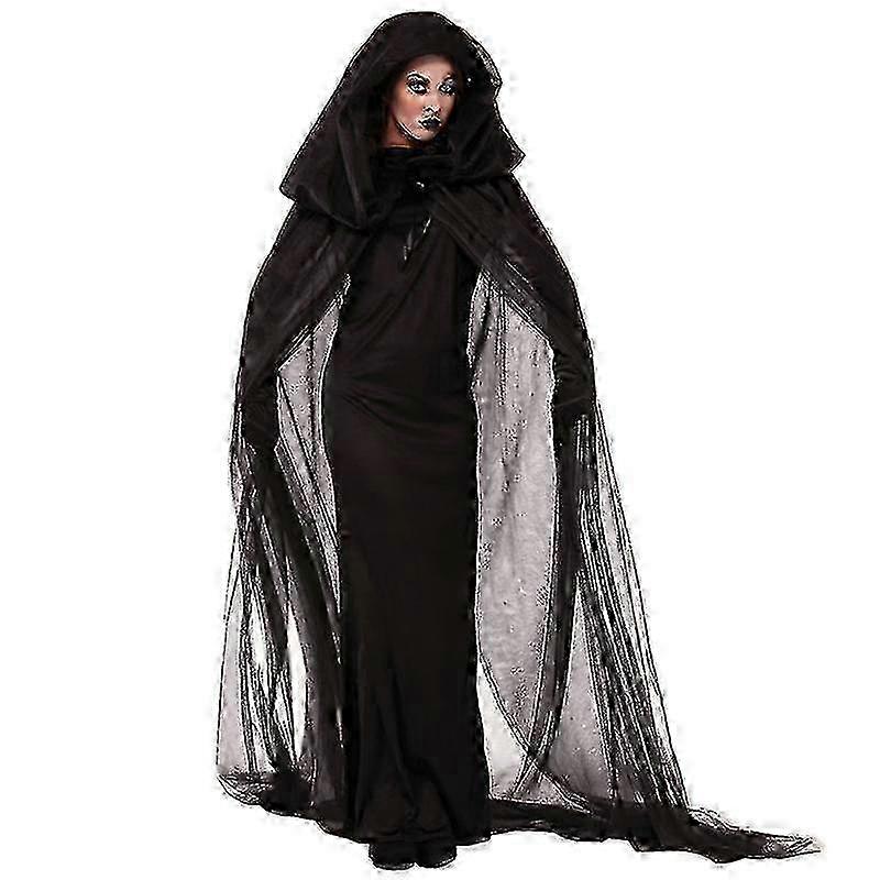Carnival Halloween Lady Wicked Witch Costume Classic Long Crape Hooded Cape Forsaken Souls Roleplay Cosplay Fancy Party Dress