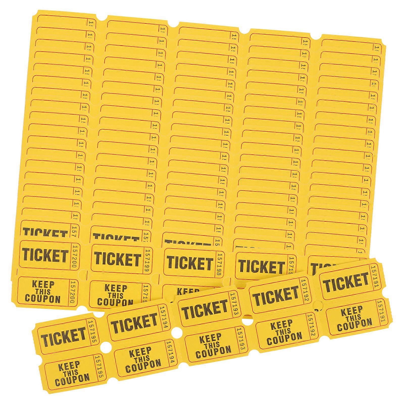 Carnival Raffle Ticket Universal Tickets Shopping Mall Numbered Records Yellow 5.00X2.50X0.10CM 100Pack