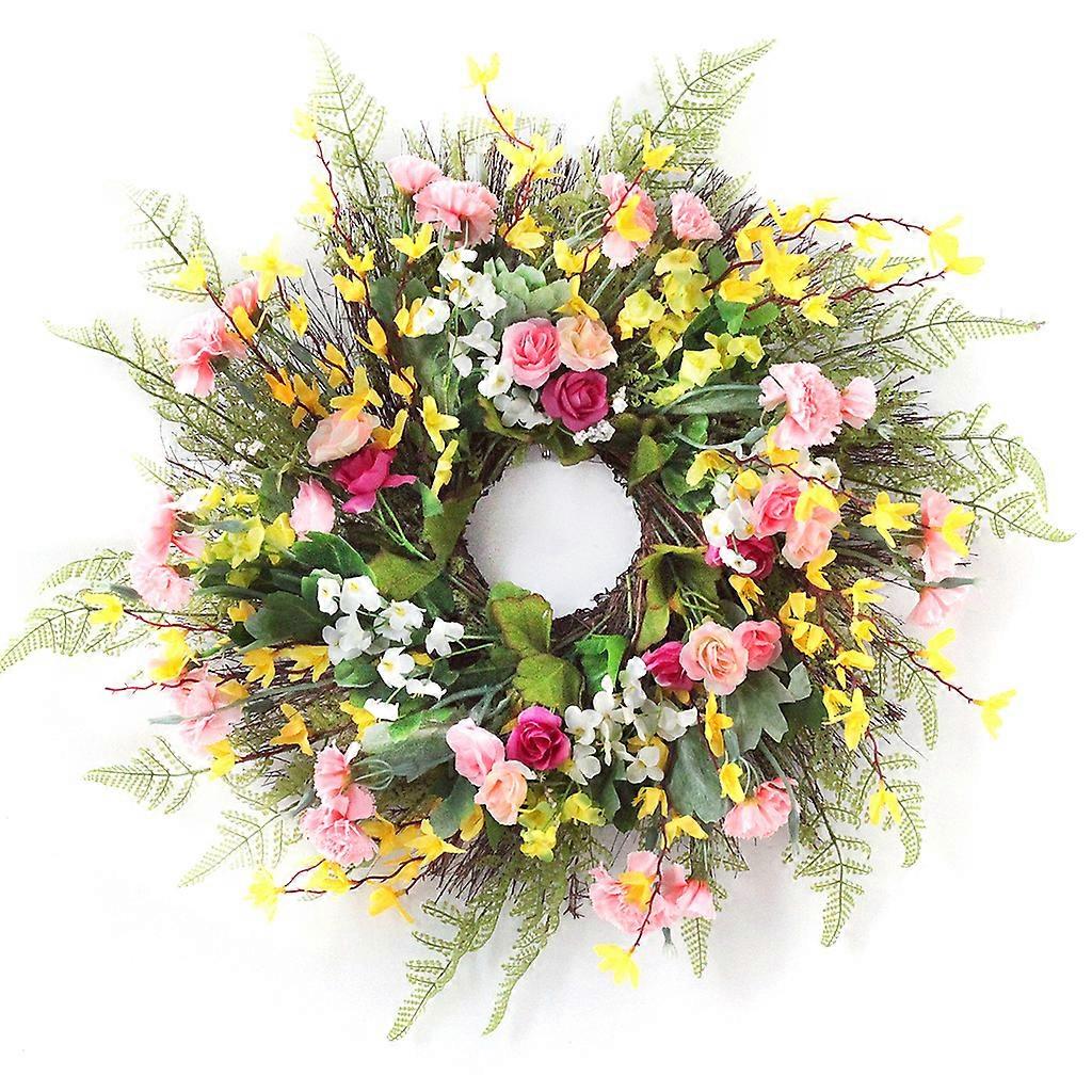 Carnation Flower Wreath Handmade Artificial Floral Garland for Front Door Wall Wedding Party Home Decor