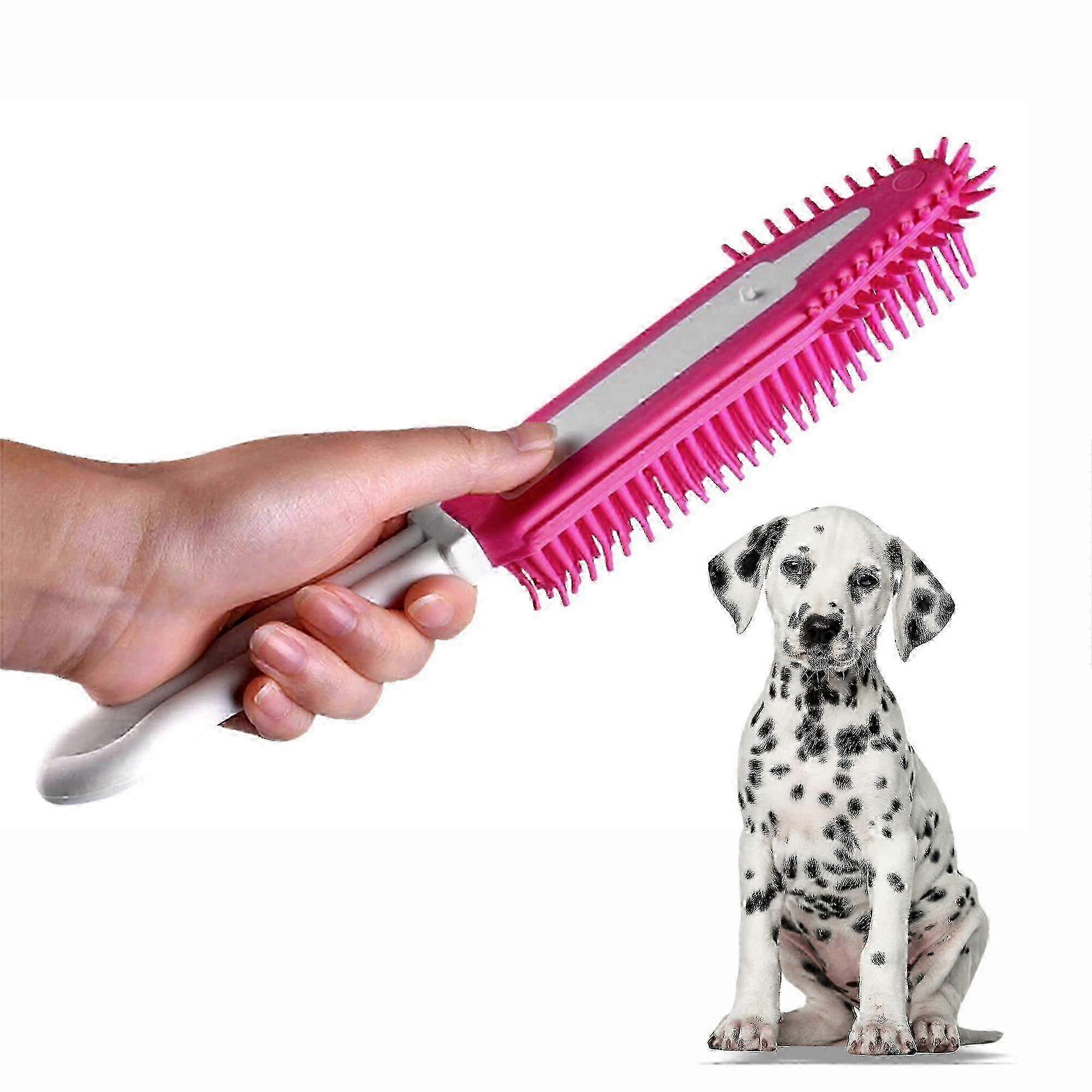 Dual-purpose rubber hand brush for cleaning pet hair from carpets, corners, stairs, and clothes (pink)
