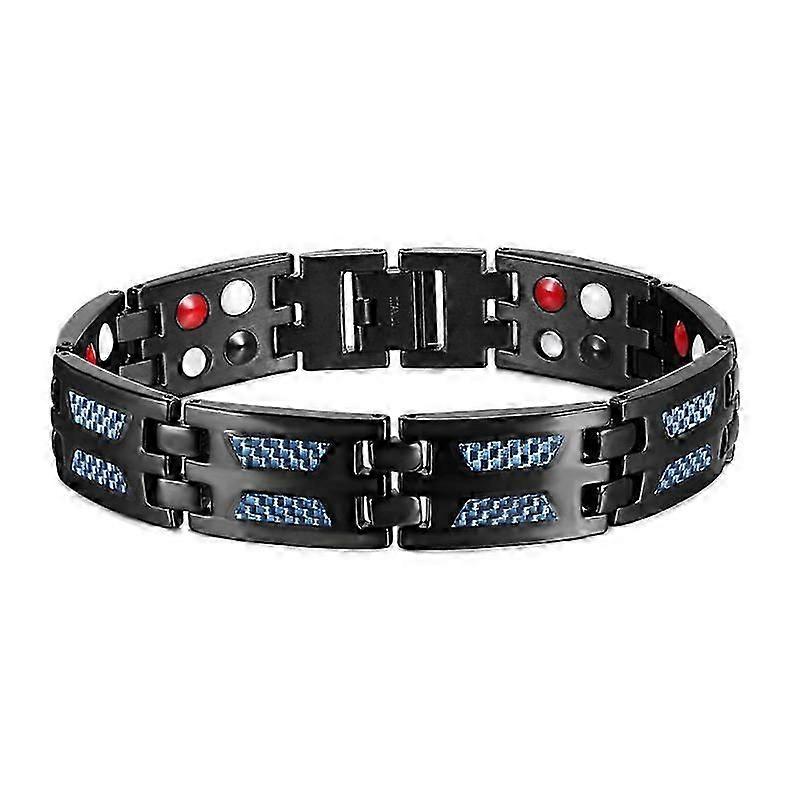 Carbon Blue Titanium Magnetic Therapy Bracelet Unique Double Row Ultra Strength