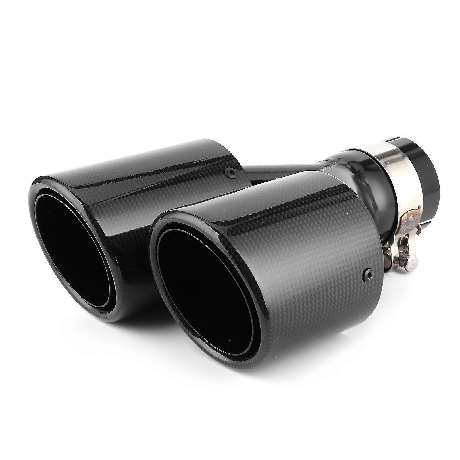 Carbon Fiber Exhaust Pipe Universal Dual Tail Crimping Throat YPipe Auto Car Black AP34KR E2U611